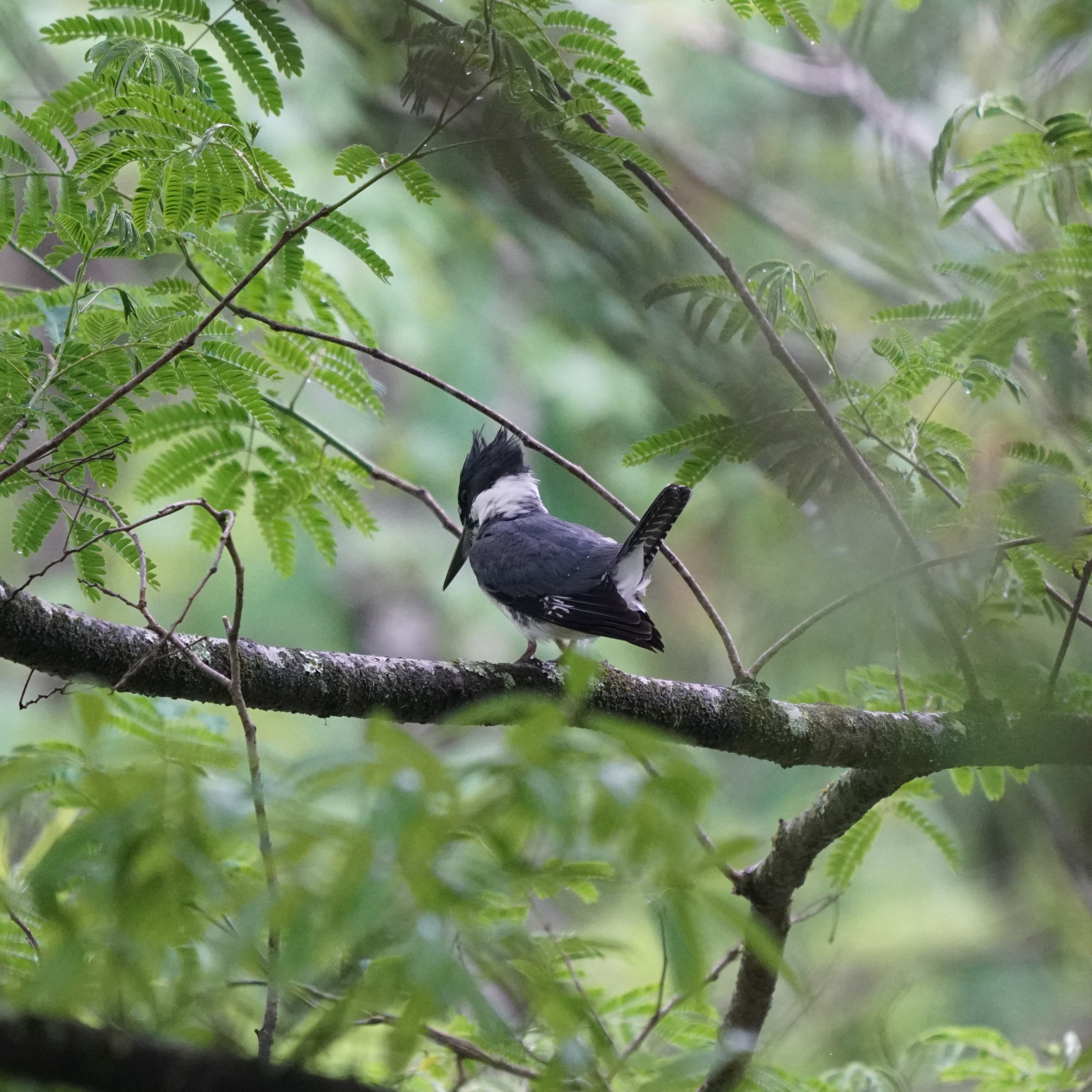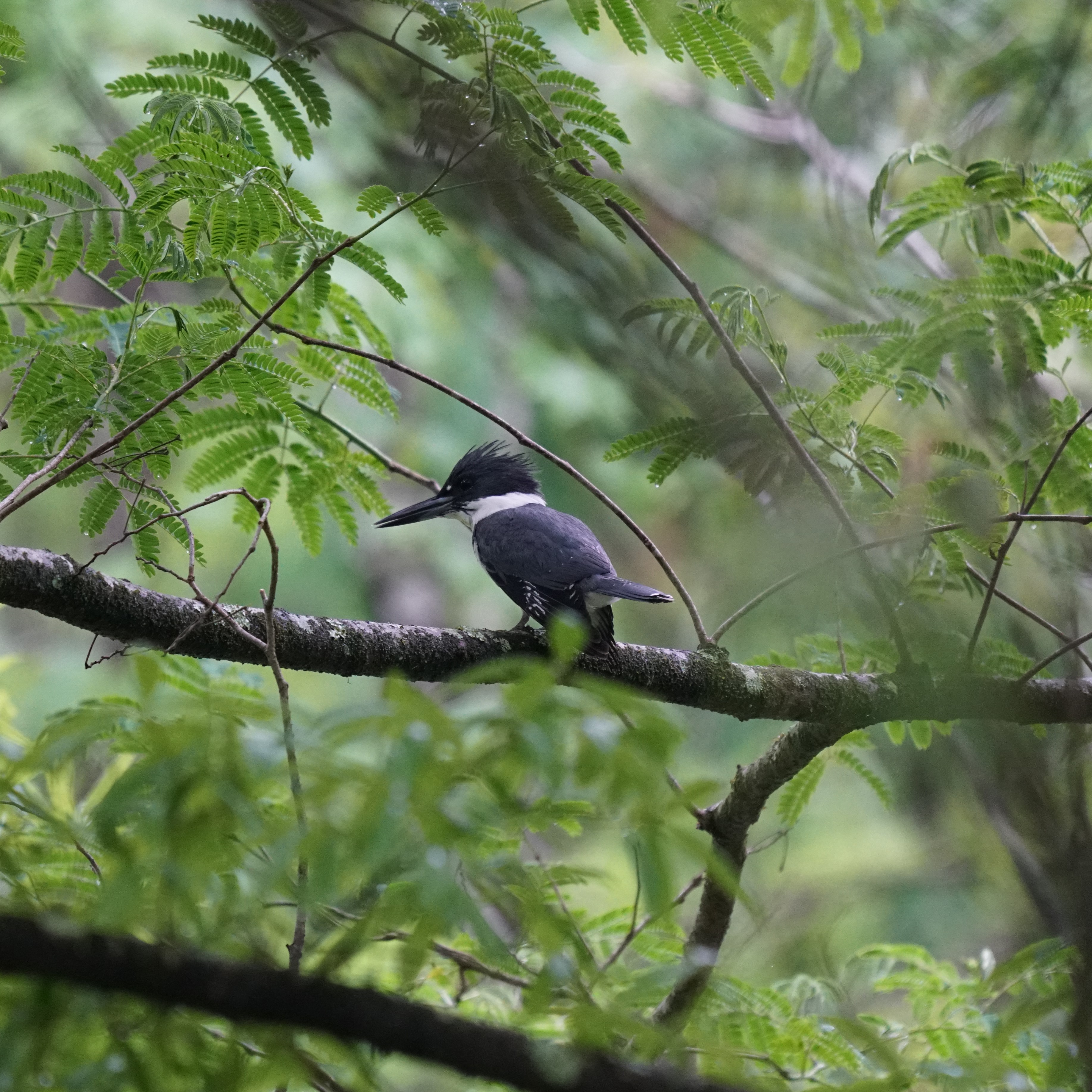 They can be found thoughout the state patroling the edges of rivers, lakes, and streams. It nests in burrows along earthen banks and feeds almost entirely on aquatic prey, diving to catch fish and crayfish with its heavy, straight bill.