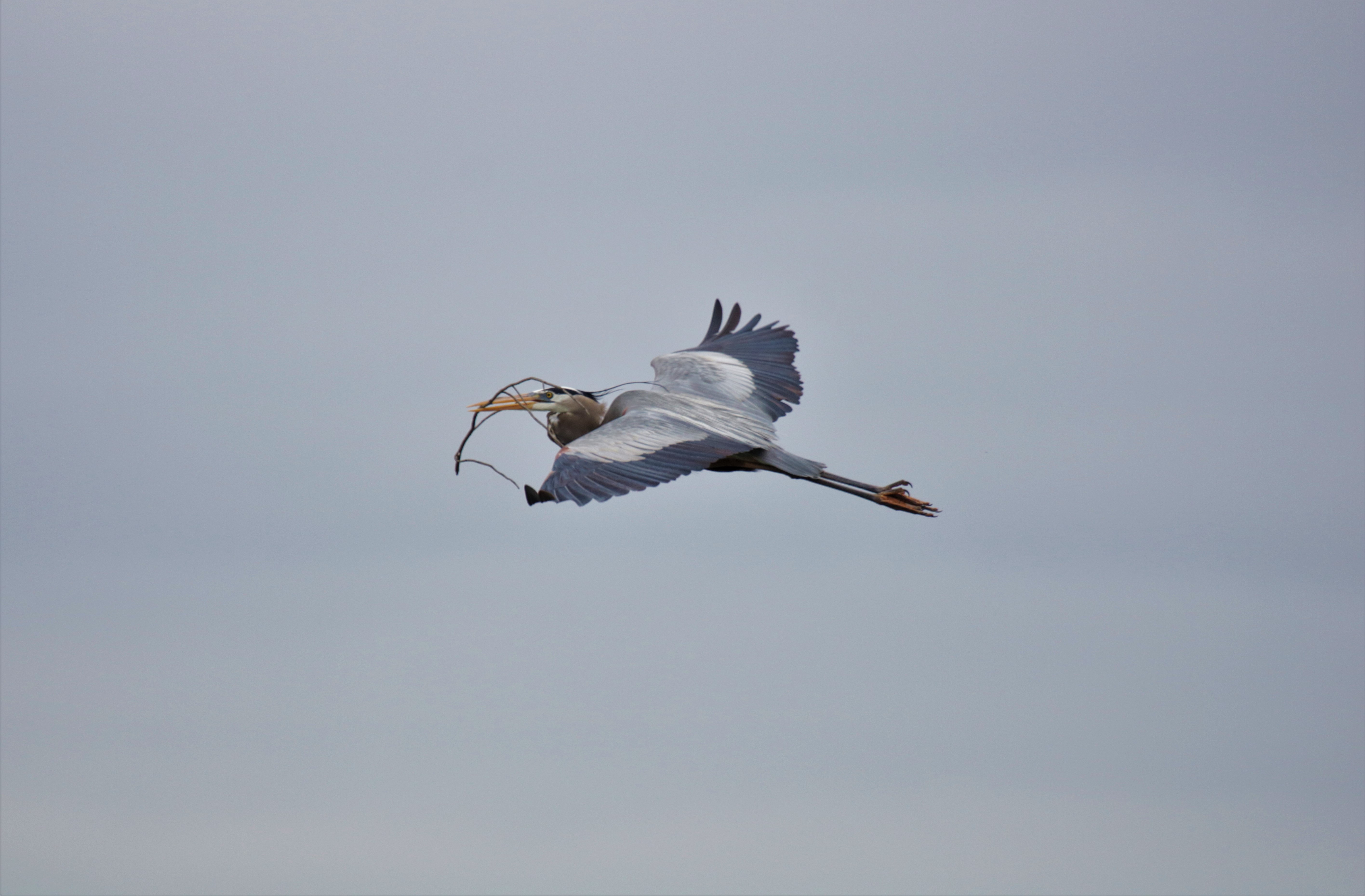 Look for Great Blue Herons in shallow water areas of lakes, rivers, streams, ponds, marshes, swamps and tidal flats. They can be found almost anywhere there is shallow water and a source of fish. They are particularly numerous in the tailraces below river dams and around commercial catfish ponds. Breeding birds gather in colonies or “heronries” to build stick nests high off the ground.