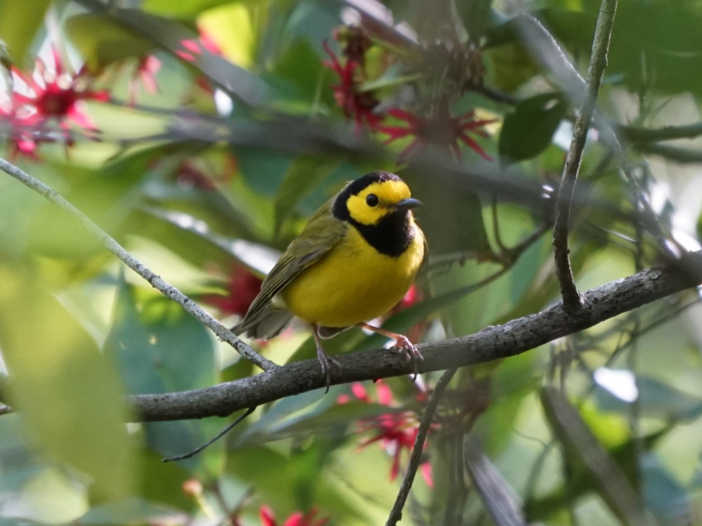 The hooded warbler is a member of the family Parulidae, the wood warblers. They breed in deciduous woodlands with dense undergrowth. In the north, they are found in mixed hardwoods, and in the south in moist, deciduous woods, swamps, and margins of streams with brushy undergrowth. Their territories usually include small clearings or gaps where thick brush provides nest sites.