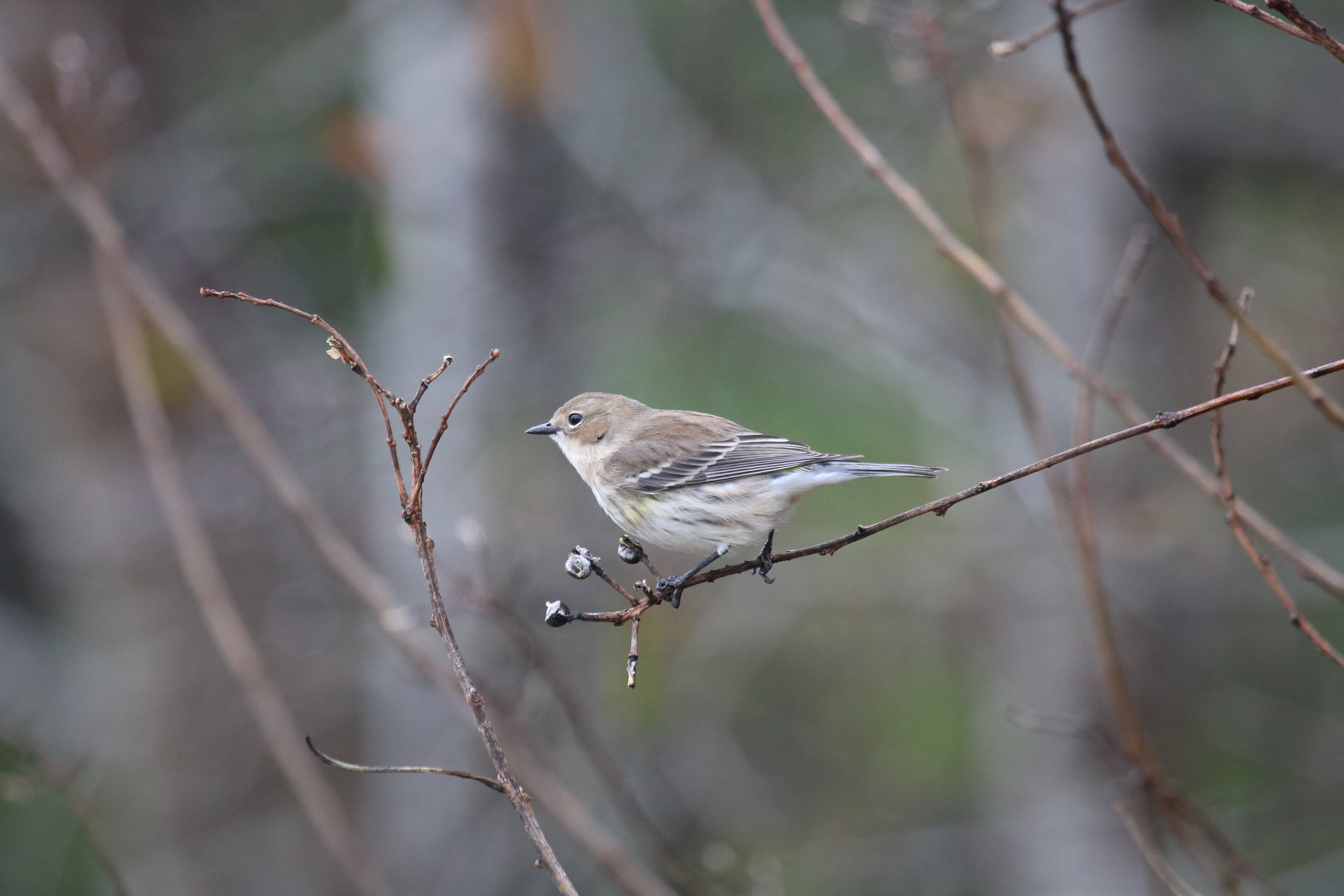 Pine Warblers are often difficult to see as they usually stay high up in pines. Insects make up most of their diet, but they also eat fruits and seeds. They occasionally forage on the ground or come to feeders. Males sing even, rich trills from the tops of pines.