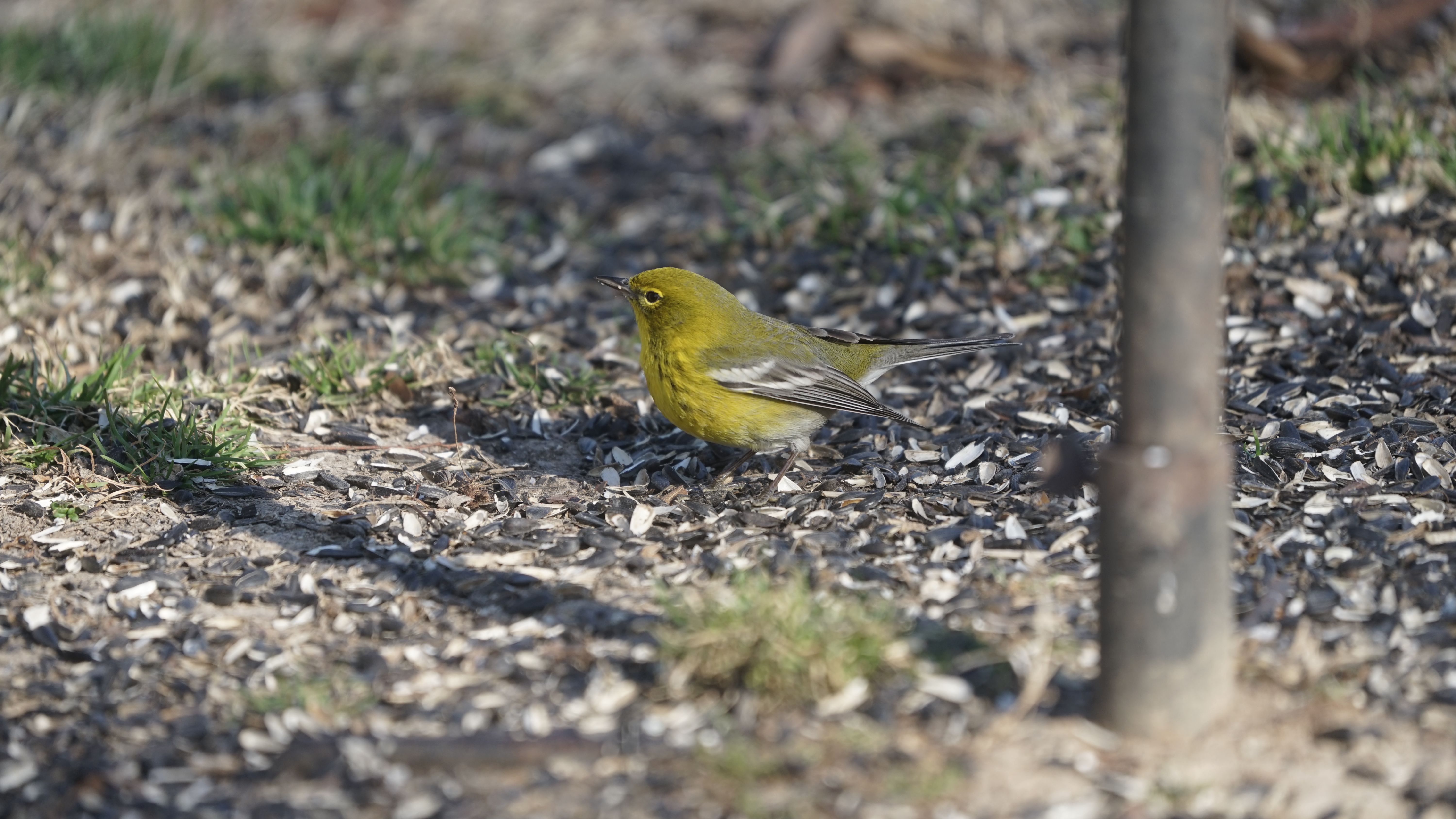 Pine Warblers are well named—they spend most of their time in pine trees. This can be in pine forests or in deciduous woods with pine mixed in. They are found in similar habitats in winter, but also visit backyards and come to bird feeders to eat seeds and suet.