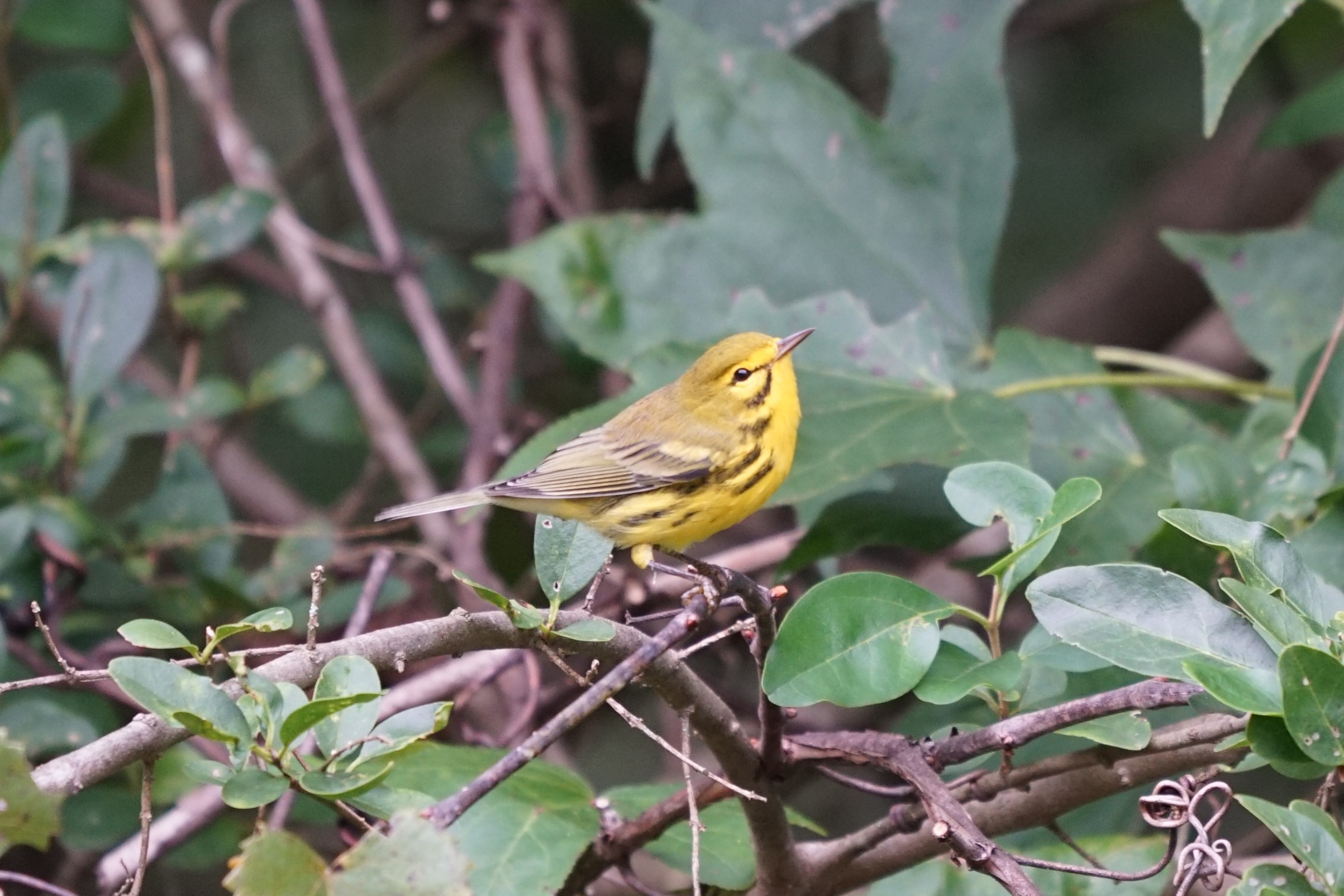 Prairie Warblers are found in scrubby, second-growth habitats such as overgrown pastures, regenerating woodlands, pine stands, and powerline cuts. The Florida subspecies lives in mangrove forests.