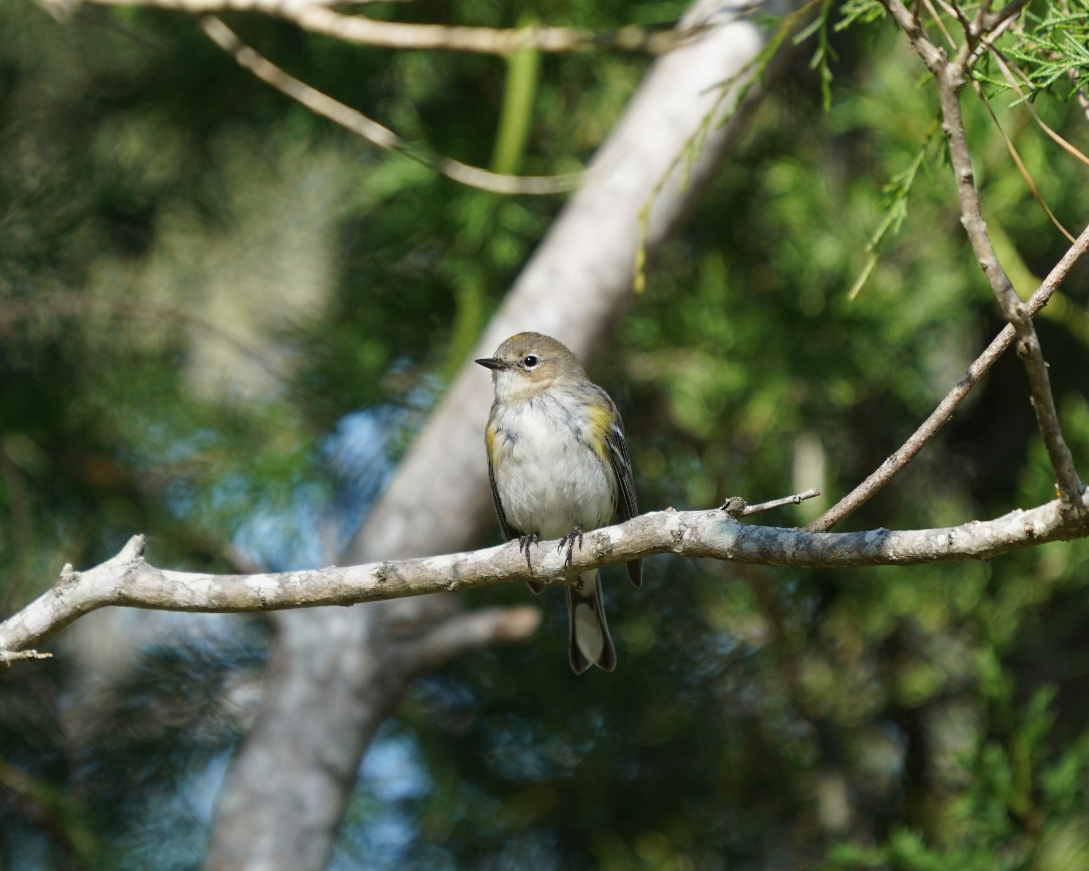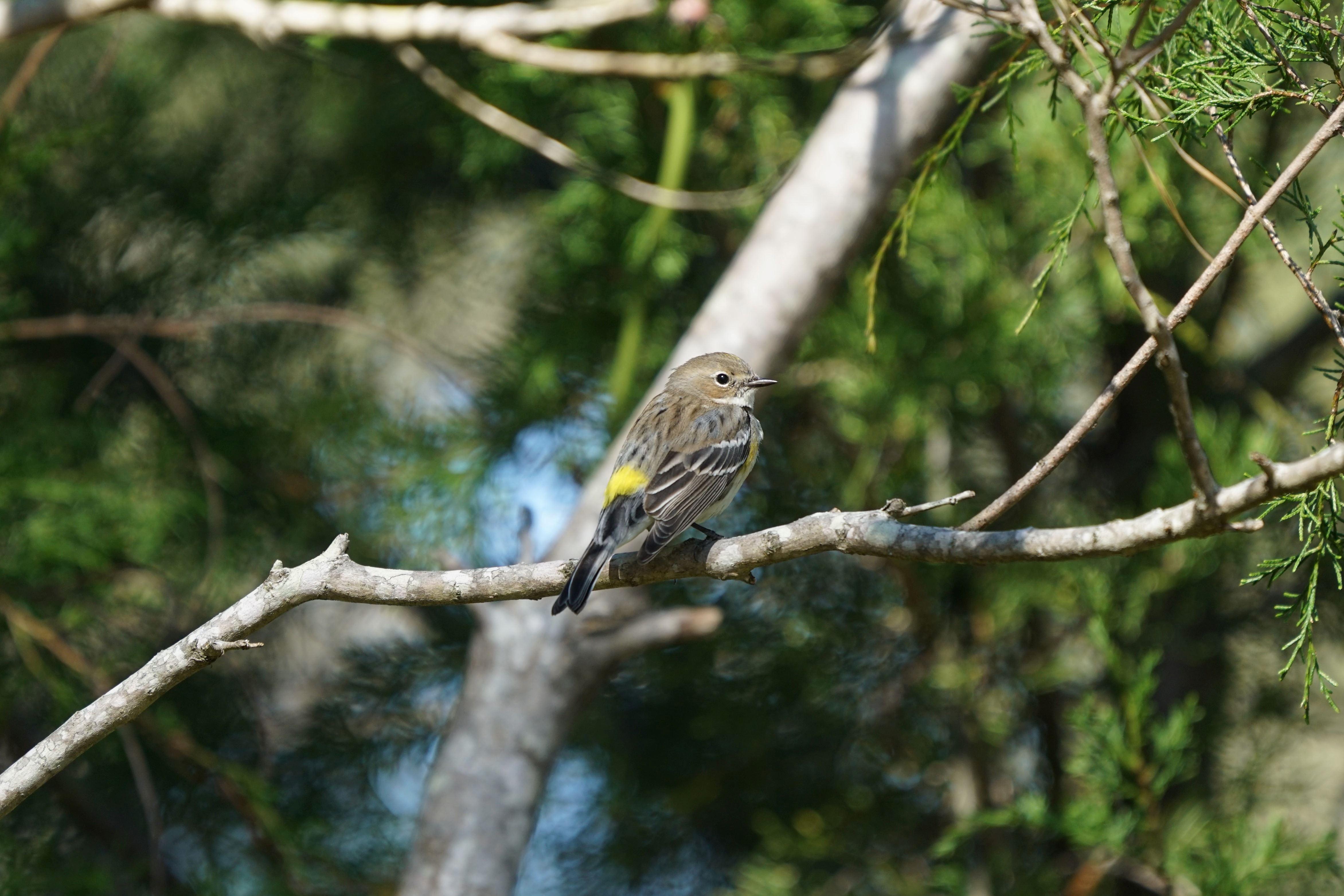 In summer, Yellow-rumped Warblers are birds of open coniferous forests and edges, and to a lesser extent deciduous forests. In fall and winter they move to open woods and shrubby habitats, including coastal vegetation, parks, and residential areas.
