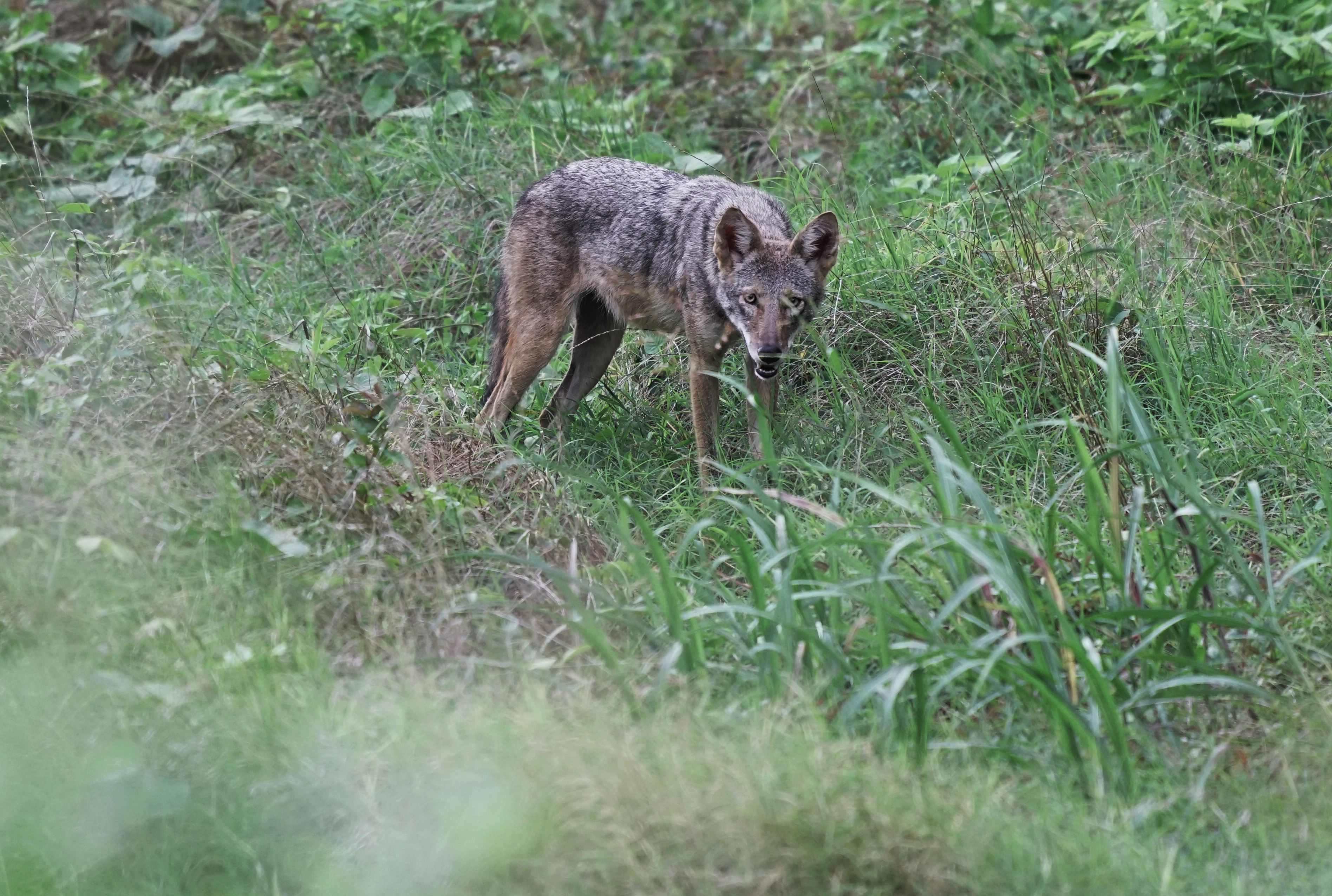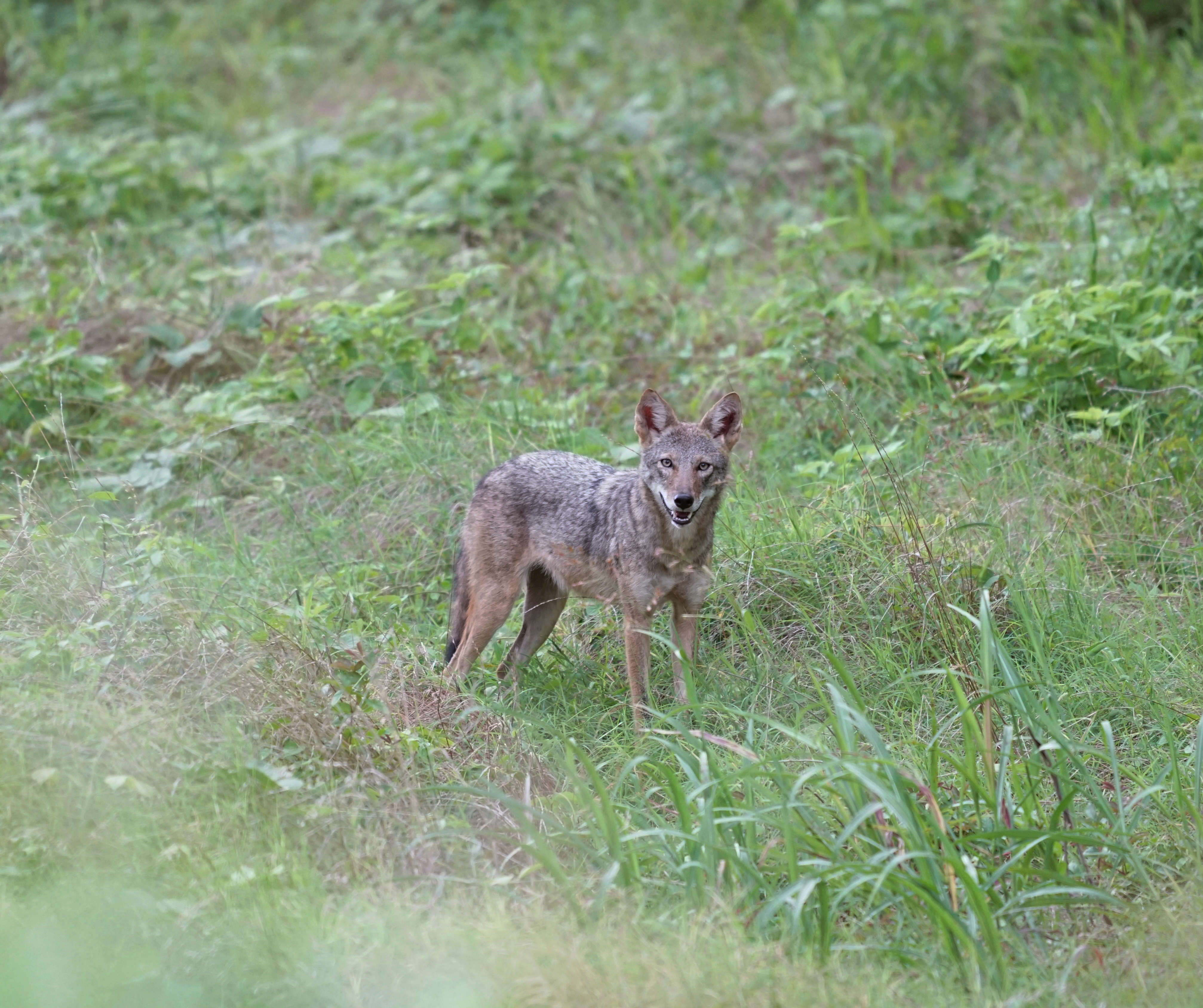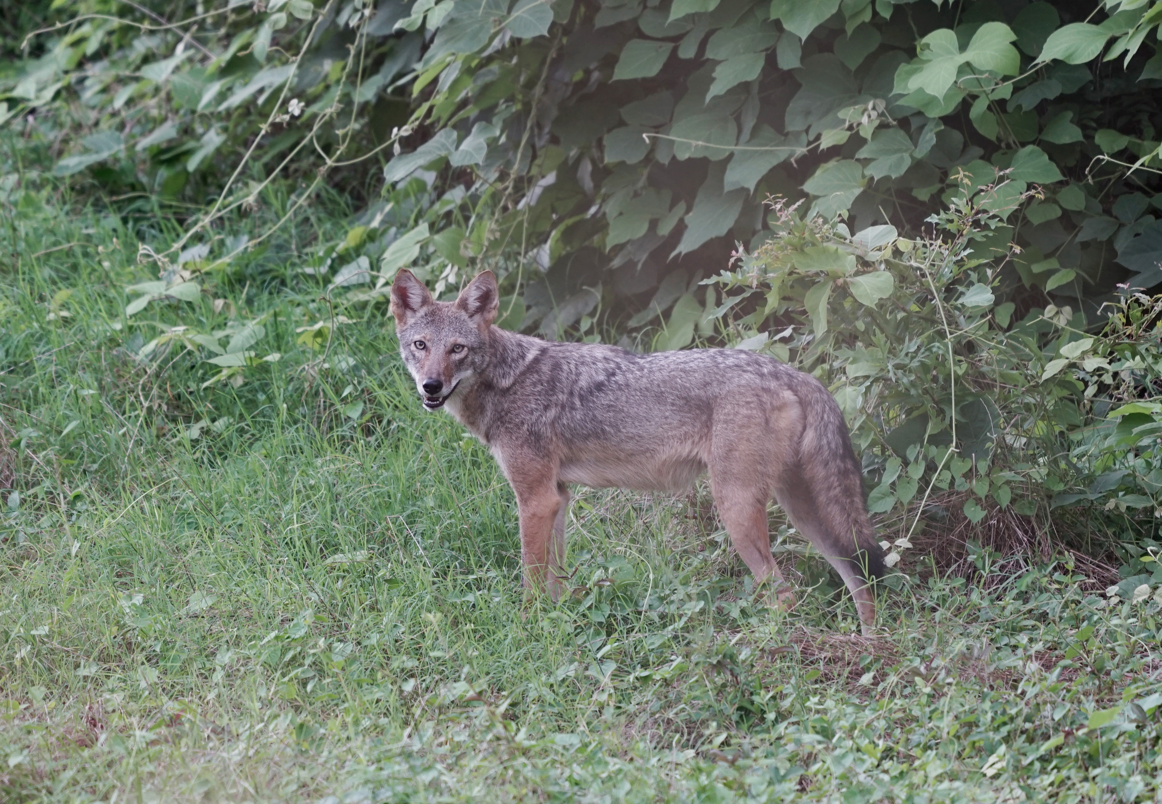 The coyote is found in a variety of habitats including fields, plains, and bushy areas. The coyote makes its den in a rocky crevice, log, cave, or the den of another animal. It usually doesn't dig its own den; it finds an abandoned den of a badger or a fox and enlarges it.