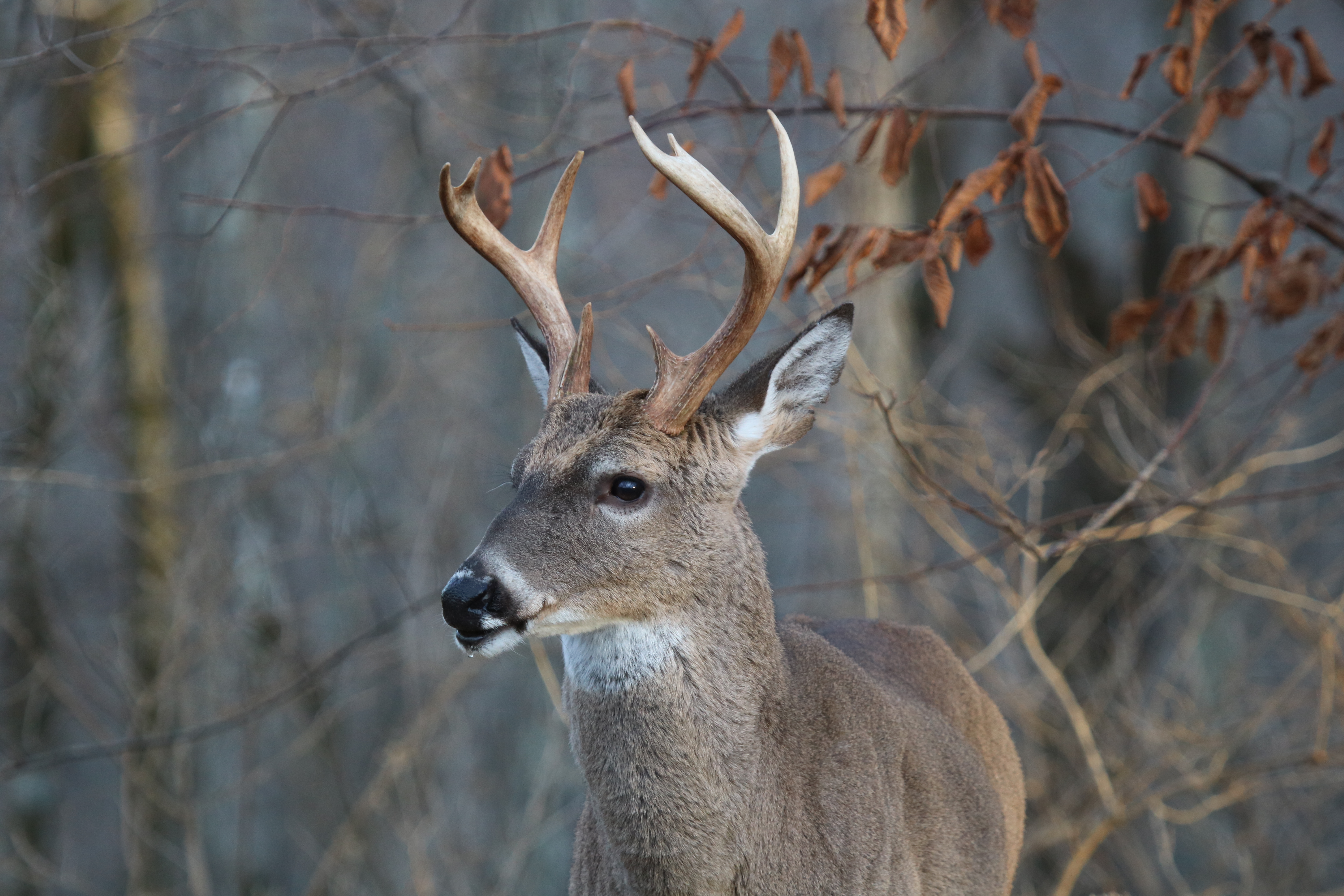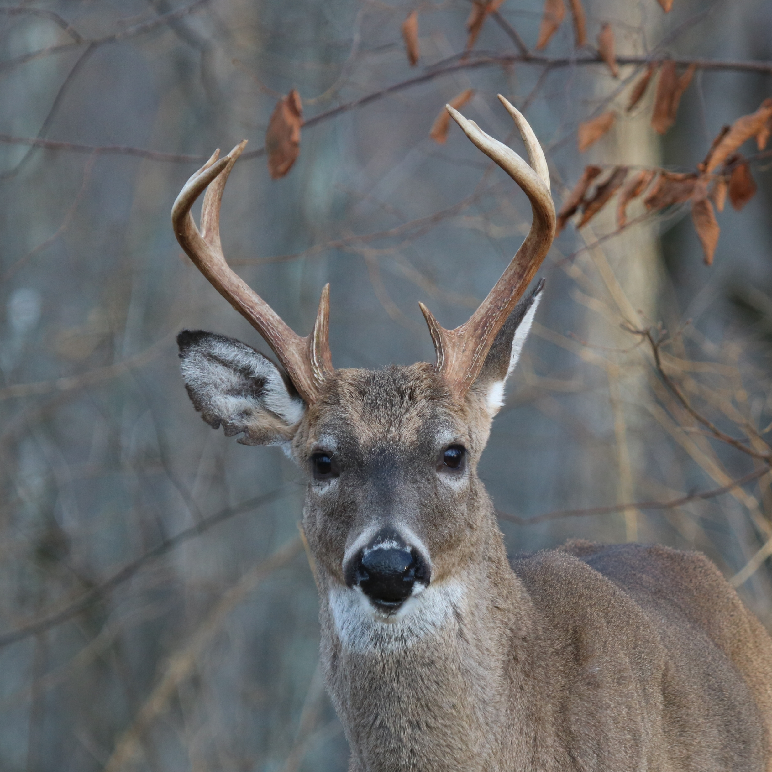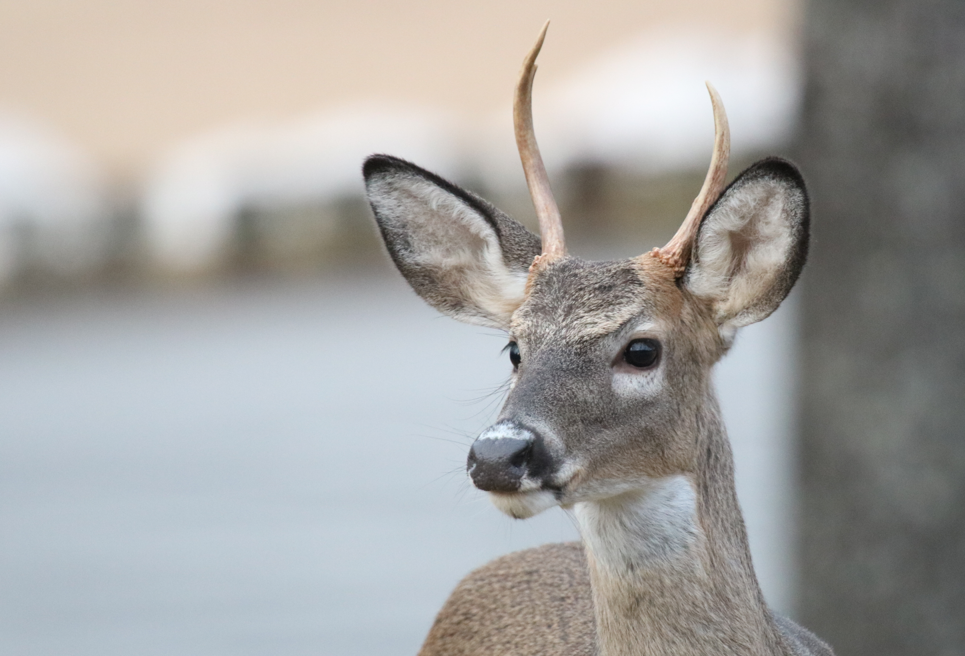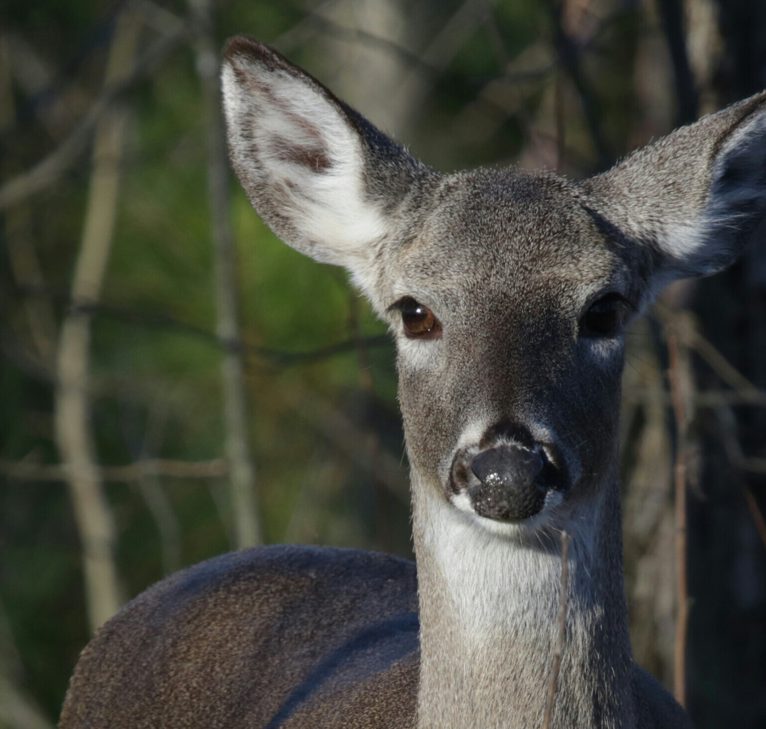 Deer have an excellent sense of smell. Their elongated noses are filled with an intricate system of nasal passages that contain millions of olfactory receptor sites. Their keen sense of smell is very important for avoiding predators, identifying other deer, and identifying food sources. Perhaps most importantly, their sense of smell is important for scent communication with other deer. Deer have seven glands that are used primarily for scent communication. Deer also have an excellent sense of hearing. Large, moveable ears allow them to detect sounds at great distances and pinpoint the direction of these sounds. Deer have numerous vocalizations, including various grunts, bawls, mews, whines, wheezes, and snorts.